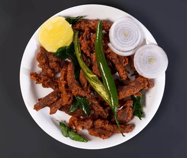 A quick and crispy version of beef fry made with small beef cubes, chili flakes, and onions—usually served as a snack or starter.Known in Kerala as “BDF,” it’s perfect for sharing and pairs well with drinks or light mains.