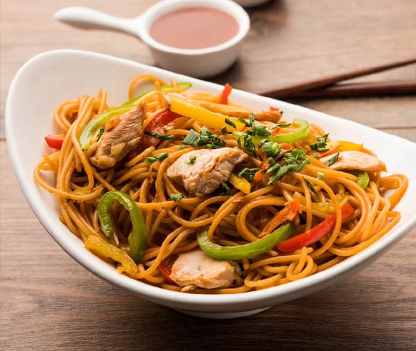 Juicy chicken strips stir-fried with noodles and vegetables in a rich Indo-Chinese sauce mix.