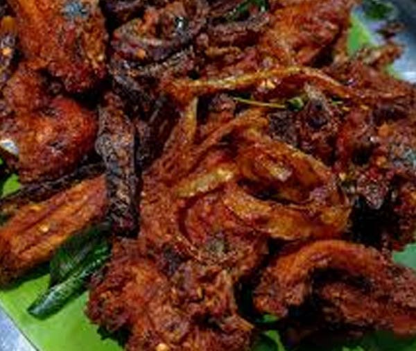 It’s spicy, quick, and full of crunch—often enjoyed as a side or bar snack in Kerala homes and toddy shops.