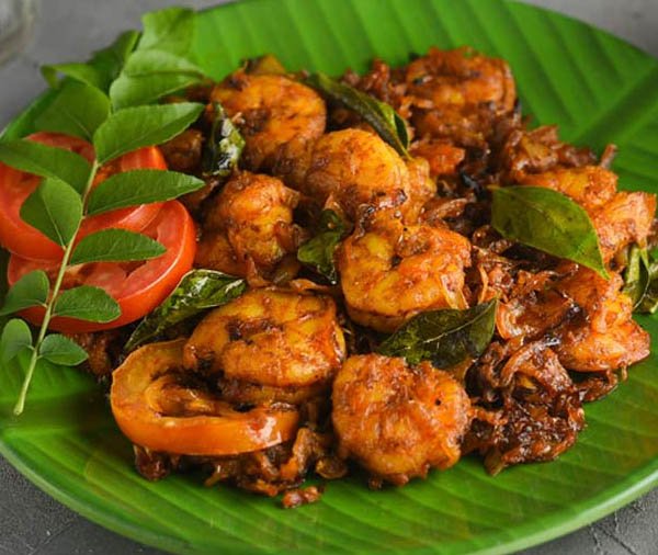 Jumbo prawns marinated in traditional spices and shallow-fried Kerala-style, crispy on the outside and juicy within.Inspired by Kumarakom’s backwater cuisine, it’s bold, spicy, and pairs wonderfully with rice or porotta.