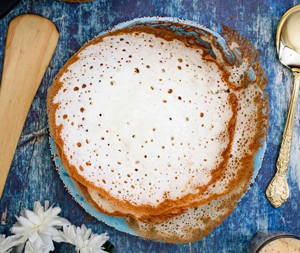 Palappam is a soft, lacy rice pancake with a crispy edge and spongy center, fermented with toddy or yeast.Best enjoyed with coconut-based curries like egg roast or stew, it’s a breakfast or dinner staple in Kerala Christian homes.